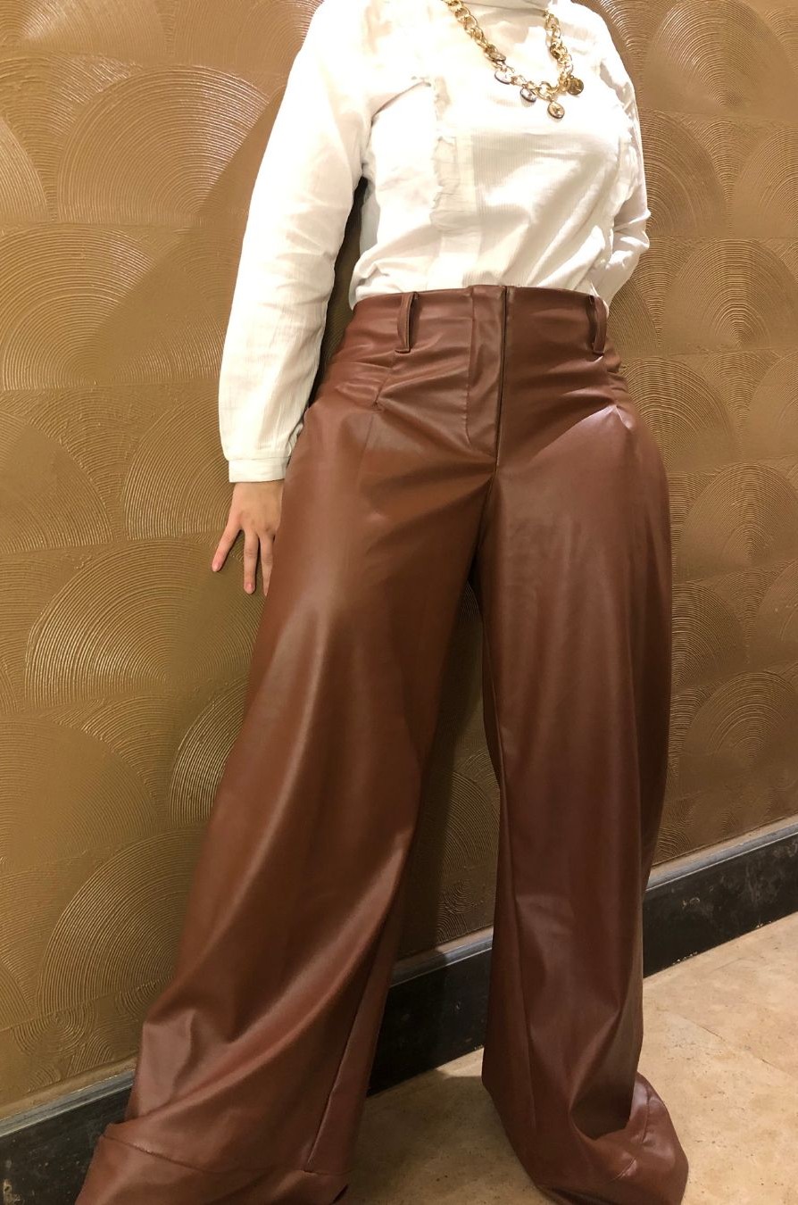 Effortless movement meets modern edge. These wide-leg pants are crafted from soft faux leather with a smooth, fluid drape that flatters every step. Tailored pleats add a touch of sophistication, while the relaxed cut keeps them versatile for day or night styling.